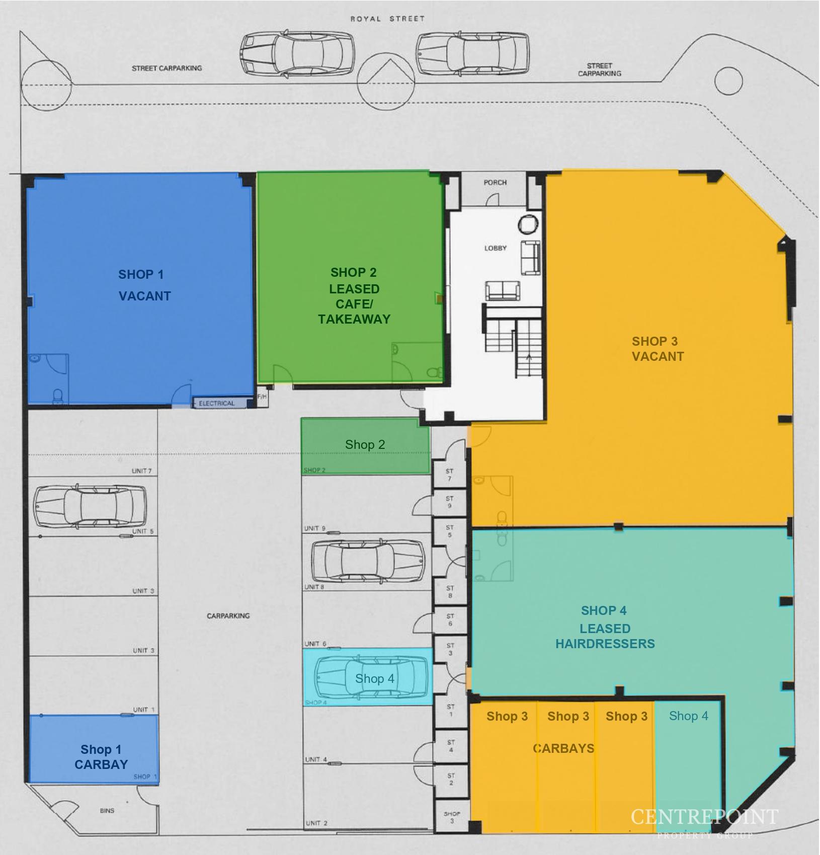 Well located prime ground floor street front 94 sqm retail shop in the Royal Street Retail and Cafe Precinct.Street frontage with 3 metre butt joined glass.