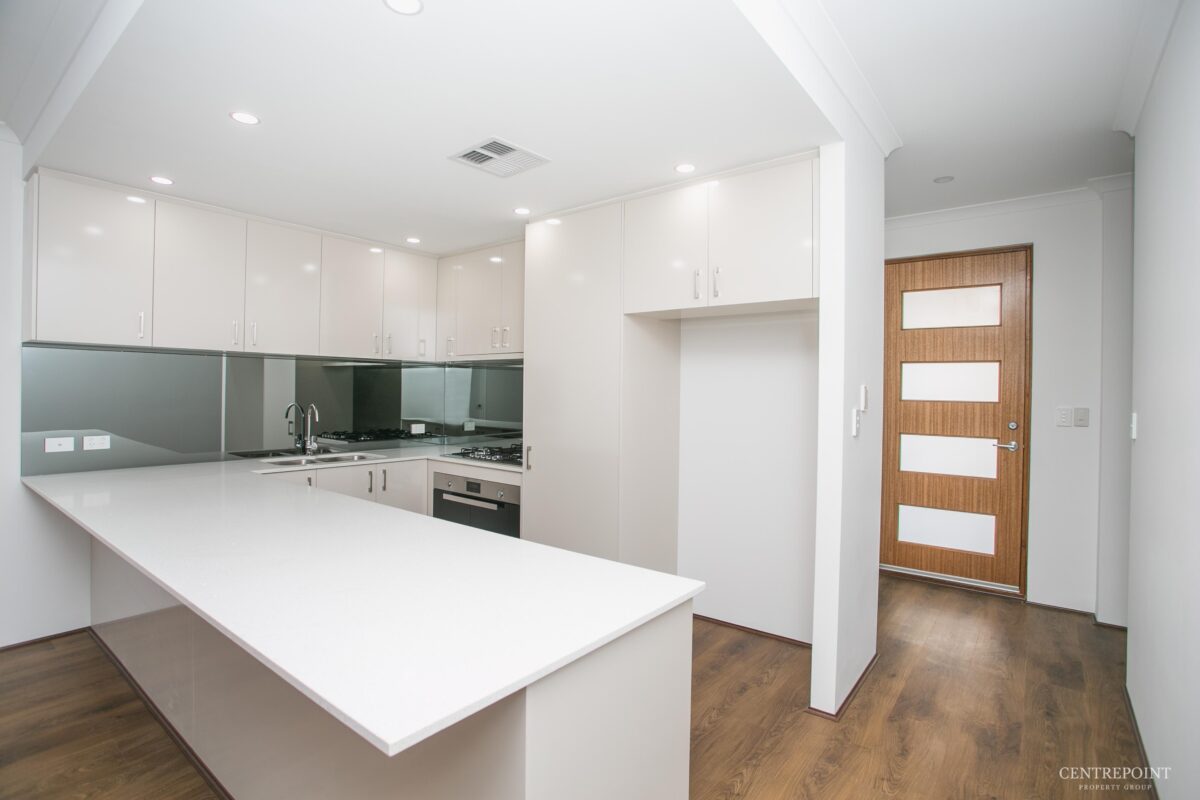 • Feature glass splash backs, Full height kitchen cabinetry