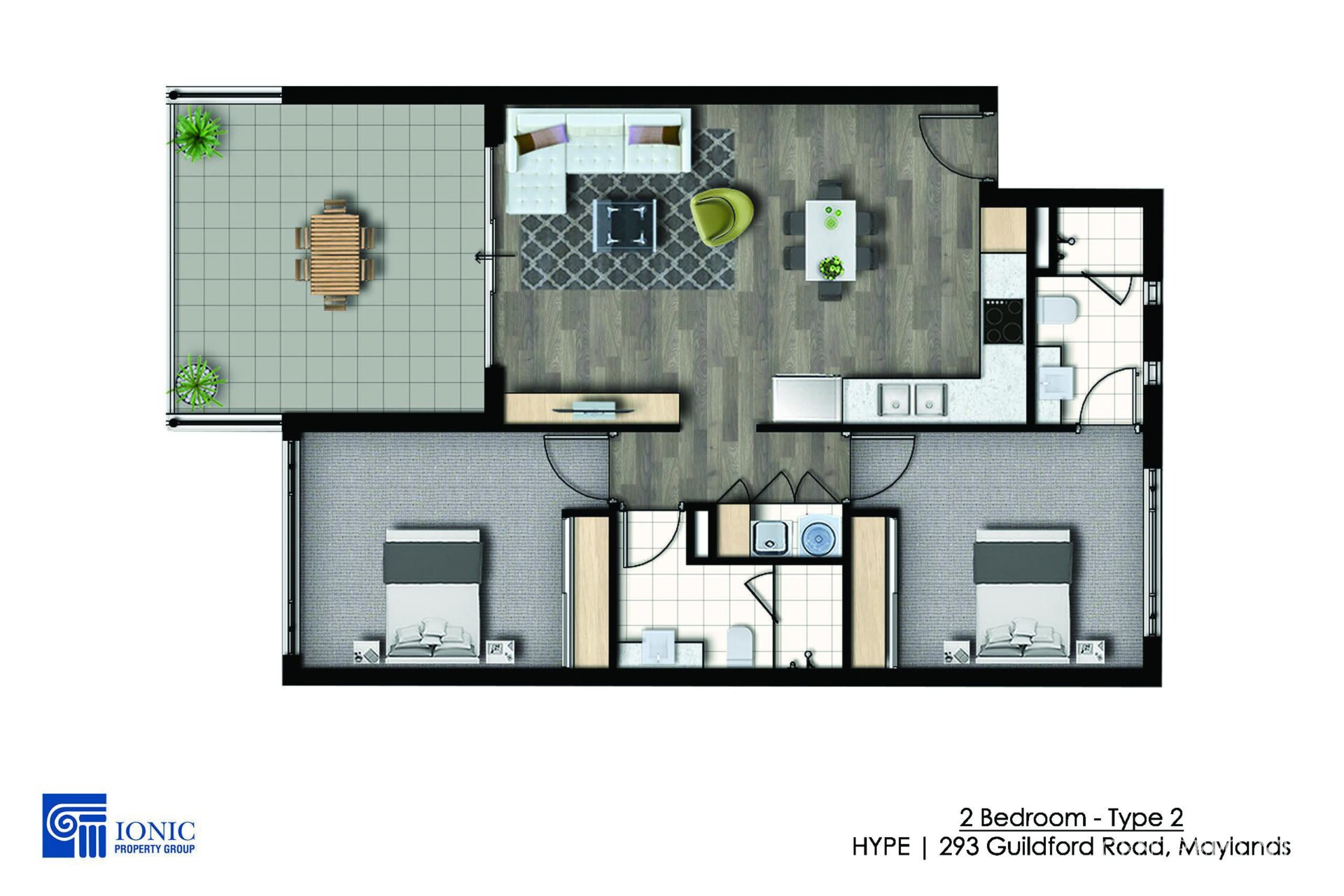 2 Bedroom, 2 Bathroom, 1 Carbay + Balcony