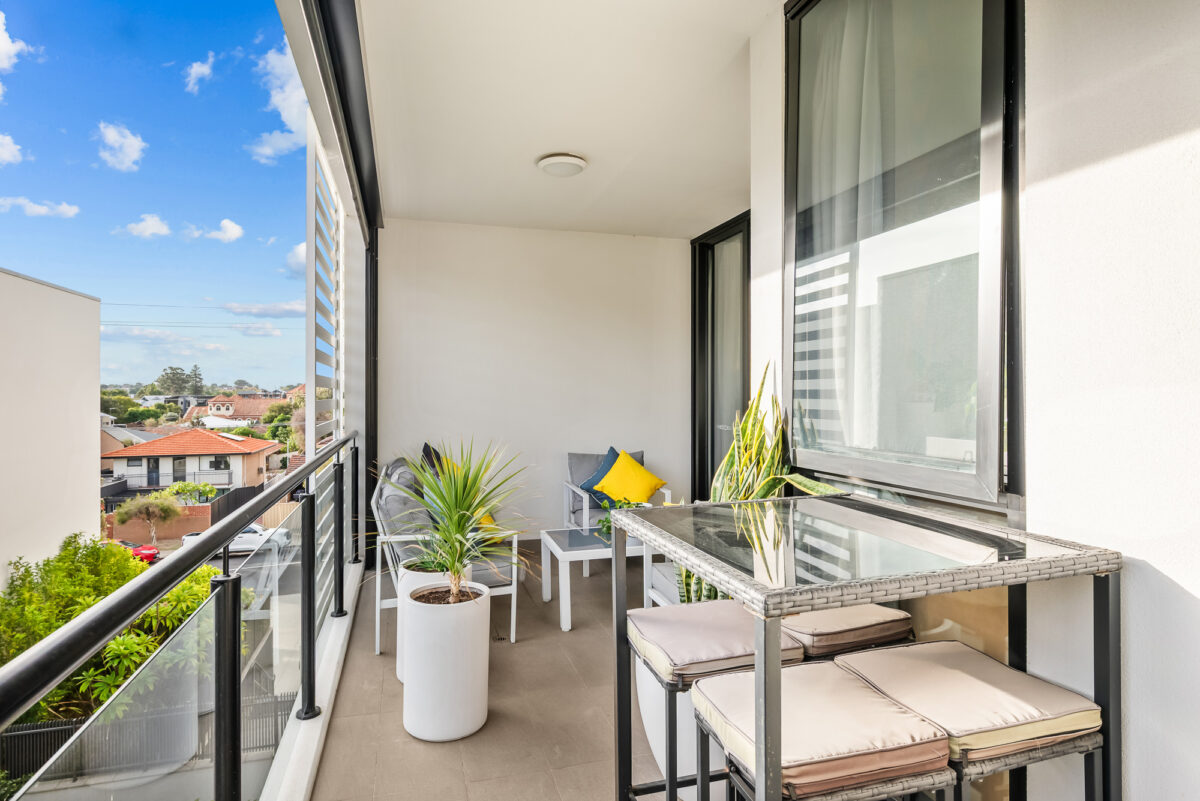 • Open-plan living and dining with high ceilings leading out to a balcony