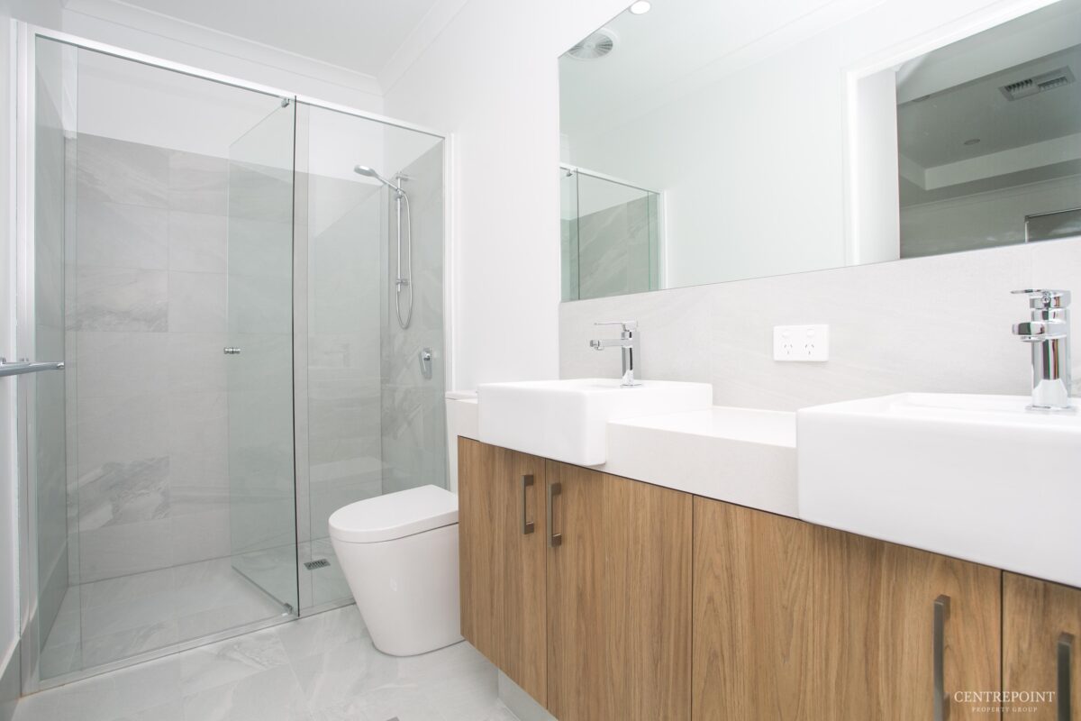 • Double vanity with stone benchtop in the ensuite bathroom