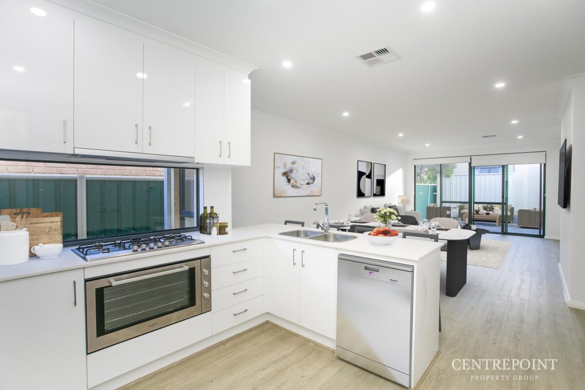 - Modern kitchen with stone bench tops.